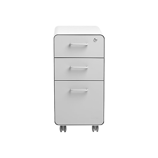 Poppin White 3 Drawer Stow Locking Filing Cabinet The Container Store